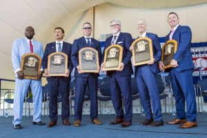 Six players reached the pinnacle of their illustrious careers when they joined the Baseball Hall of Fame during a sun-splashed ceremony Sunday afternoon in Cooperstown, N.Y.