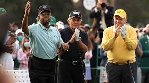 Elder joined Gary Player and Jack Nicklaus on the tee at Augusta National Golf Club to help kick off this year’s quest for the green jacket: