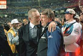 In 1989, Jerry Jones, the new owner of the National Football League‘s Dallas Cowboys, a long-time friend and former University of Arkansas teammate of Johnson’s, asked him to become the 2nd head coach in franchise history, replacing Tom Landry, who had coached the team since its beginning in 1960. Johnson was reunited with former Miami standout Michael Irvin, and in Johnson’s first season as coach, the 1989 Cowboys went 1–15. Johnson, however, did not take long to develop the Cowboys into a championship-quality team. Johnson had an ability to find talent in the draft, make savvy trades (namely, the trade of Herschel Walker, which yielded six high draft picks and a number of players from the Minnesota Vikings), and by signing quality players such as Jay Novacek as free agents in the age before the NFL had imposed a salary cap.